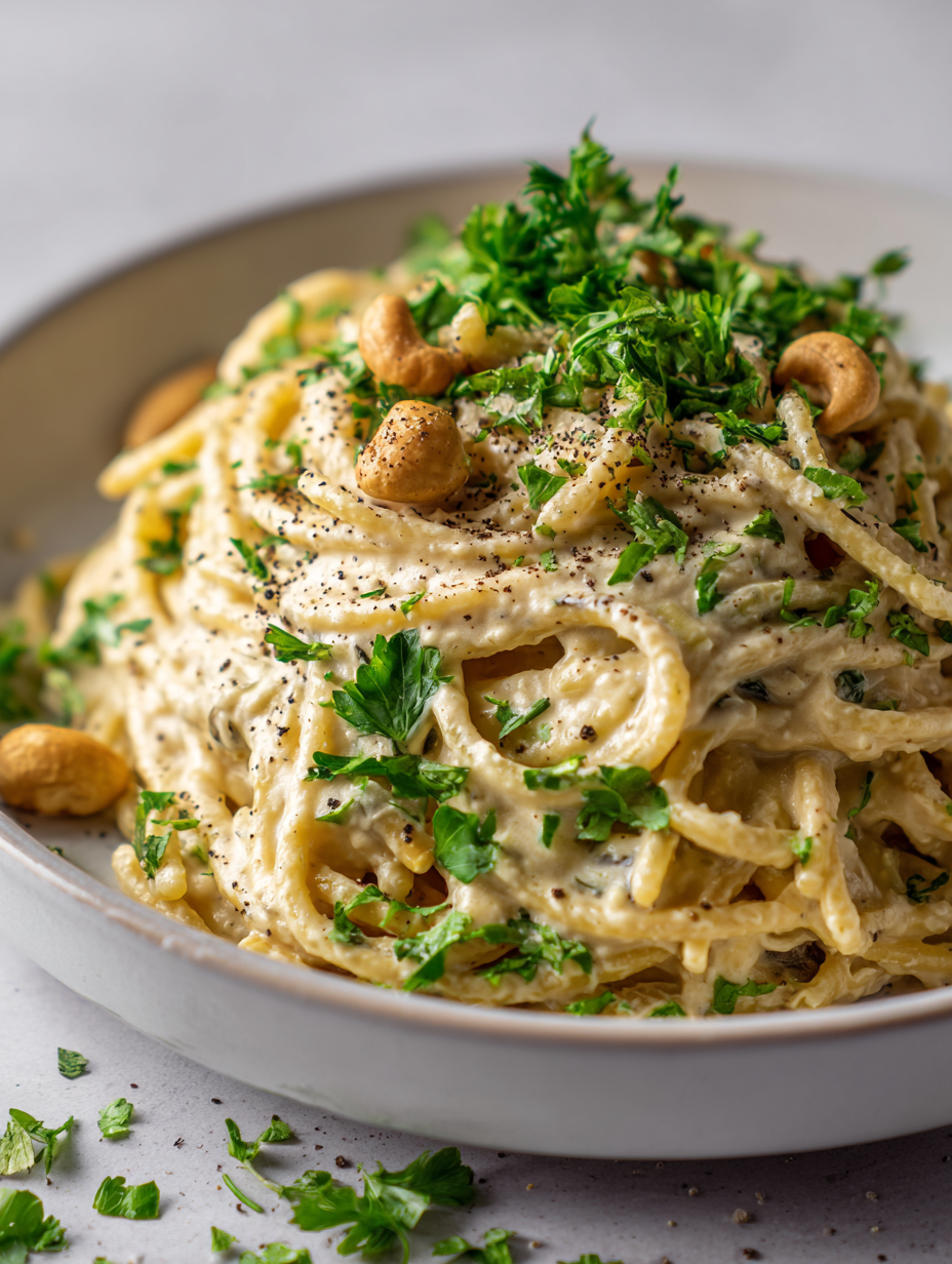 • What keeps me coming back to this recipe is how it feels like a small act of rebellion—dishing up something so lush without any dairy. It’s become my go-to for when I want to impress without stress, or just need a reminder that plant-based can be just as decadent. The aroma of toasted garlic and nutty cashews still makes me smile, every single time.