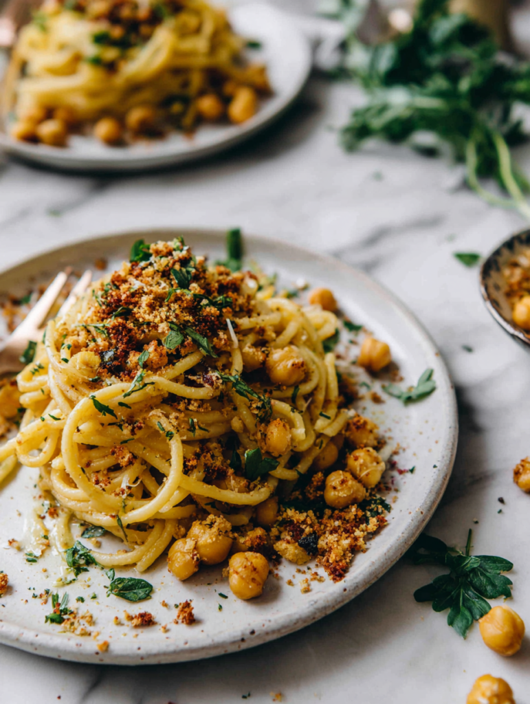 This recipe was born out of a lazy Sunday afternoon when I rummaged through my pantry and found a can of chickpeas and some forgotten pasta. I wanted something nourishing, quick, and satisfying but with a bit of a twist—something that felt familiar yet new. The idea of combining creamy chickpeas with al dente pasta and adding a smoky, toasted topping came from a craving for comfort that still kept my taste buds alert. It’s become a go-to dish that reminds me how humble ingredients can be elevated with a bit of care and a touch of spice.