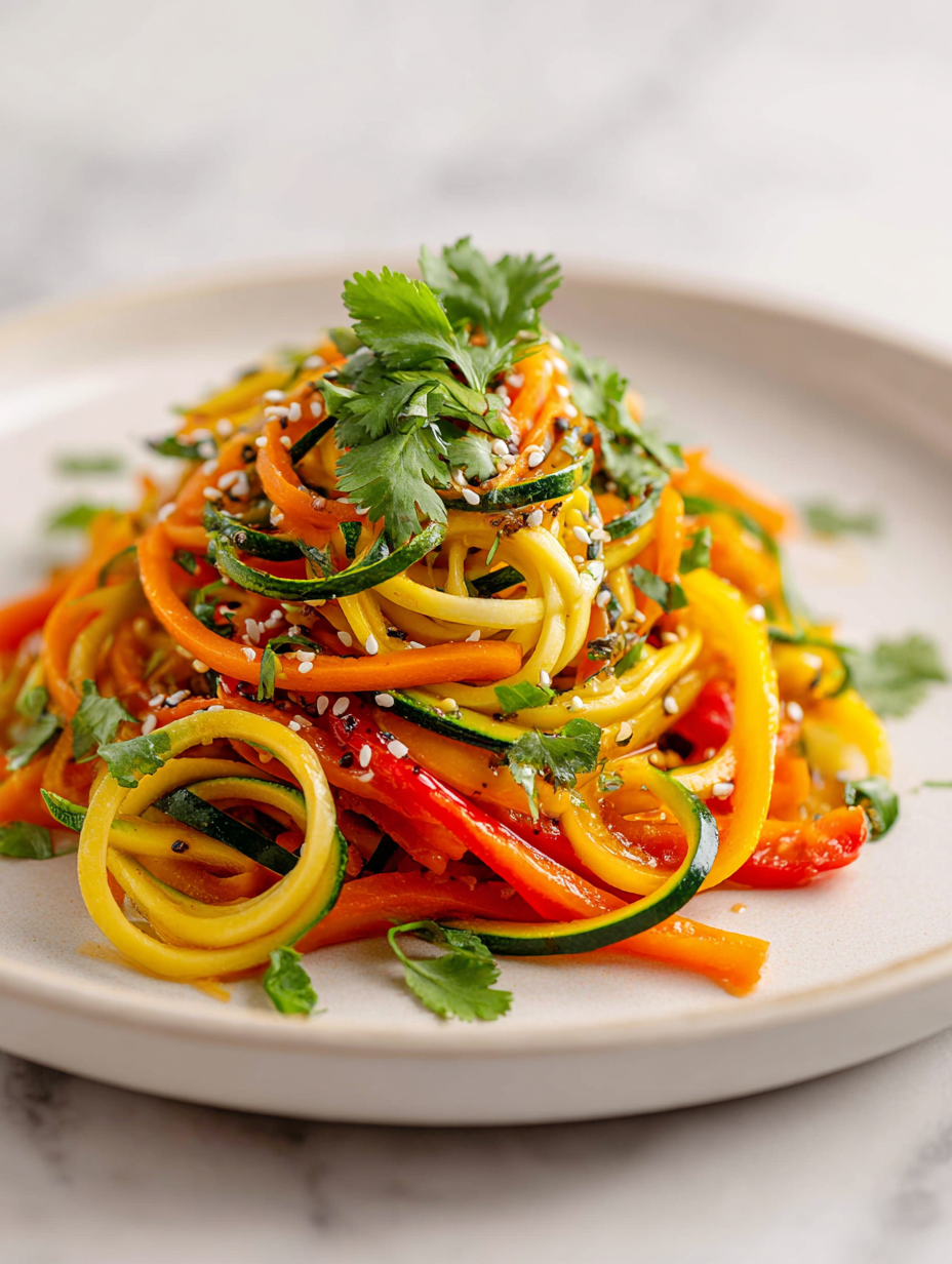 - Serve immediately: Veggie noodles are best when fresh; if you need to hold, keep warm in a low oven (about 80°C/176°F) and toss again before serving.